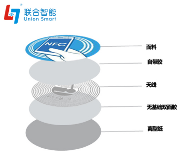 以下是普通RFID标簽内部結構(gòu)圖:離型紙+無基材雙面膠(jiāo)+天線+芯片+雙面膠(jiāo)+面料