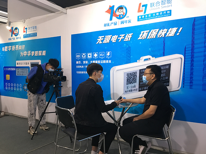 展會上,聯合智能展出瞭(le)發明專利-冷壓封裝工藝、數字貨币可視卡、指紋卡、藍牙定位卡、NFC無源可視電子标簽等相關技術成果,充分體現瞭(le)我們的研發實力和産品豐富性。所展産品都受到瞭(le)行業客戶和參觀者的歡迎,享受瞭(le)明星般的圍觀待遇。憑借創新性的突出優勢引來瞭(le)CCTV《崛起中國》欄目組的關注,現場採訪公司總經理姜凱,並(bìng)圍繞數字貨币可視卡進行瞭(le)詳細報道。