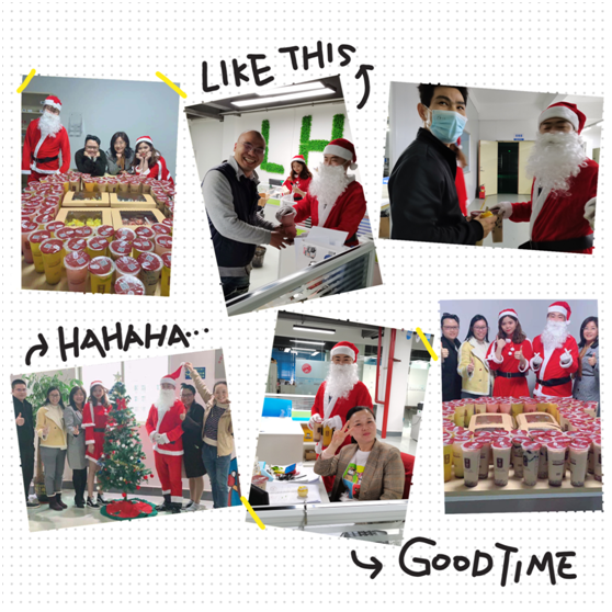 同事們紛紛與聖誕(dàn)老人和聖誕(dàn)妹妹合影留念,喜悅之情溢於(yú)言表。