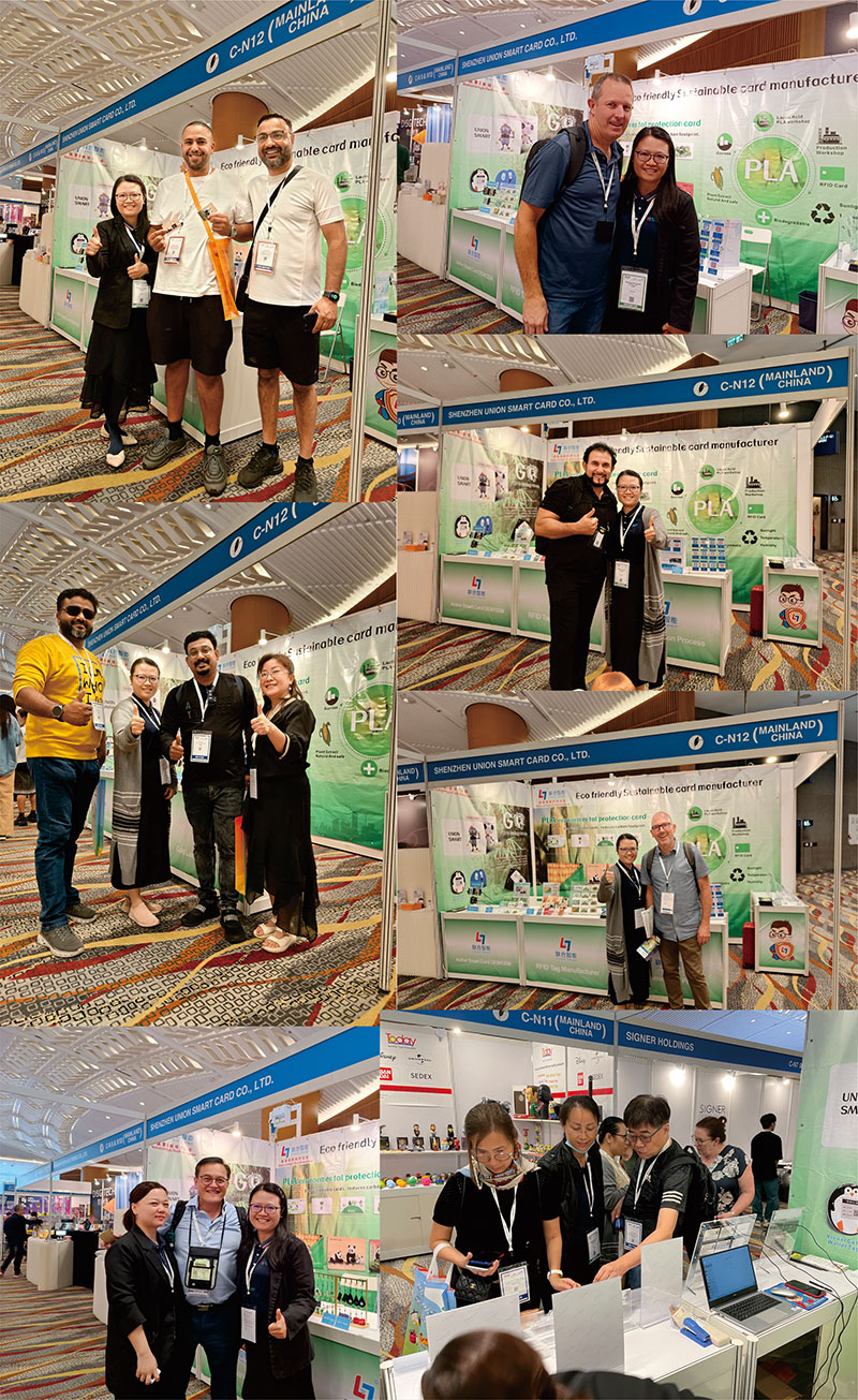 在這場爲期四天的展會上,我們向不同國家、不同膚色的買家展示瞭(le)各款特色的産(chǎn)品和技術——屏蔽卡、指紋卡、木卡、PLA卡、冷壓工藝等。聯合智能的經營理念和本次展會主題是環保節能、可持續發展。正如習總書記所說,“綠水青山就是金山銀山”。我們希望能把我們的經營理念傳達給世界,所以我們研發竹木、PLA、PET、PETG、R-PVC等多種環保材料的新型卡。環保是現在每一個人都關心的問題,正因如此,展覽中的大多數買家對我們的産(chǎn)品都非常感興趣,他們很想知道我們産(chǎn)品的技術和應用領域,而我們也熱情地給他們解答瞭(le)疑惑。