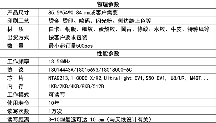 感應靈(líng)敏,耐彎折芯片;印刷清晰,可來(lái)圖定制;多種芯片型号可選。