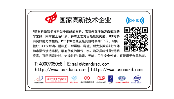 環(huán)保PET智能卡|耐高溫可用於(yú)食品包裝